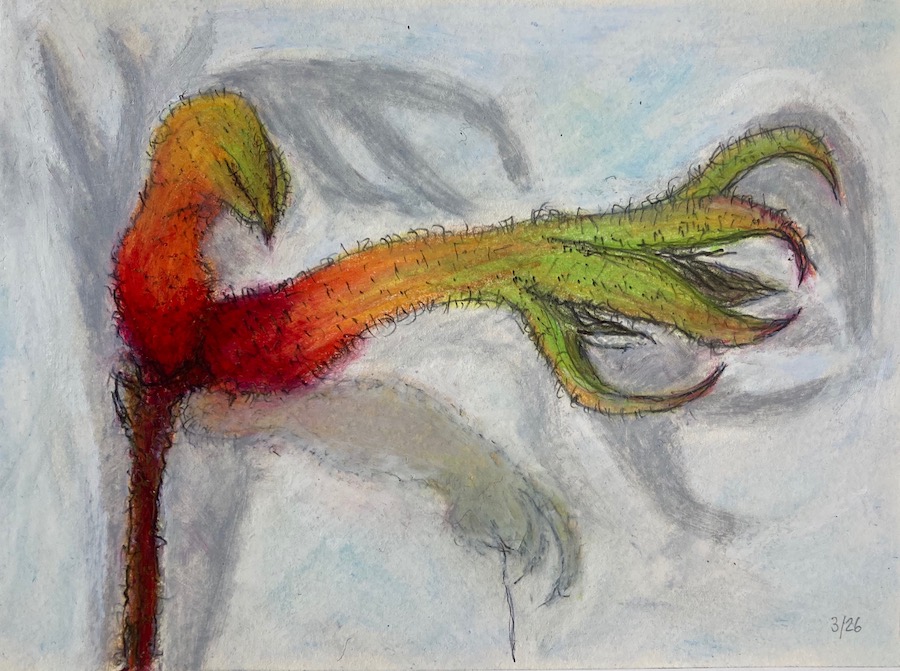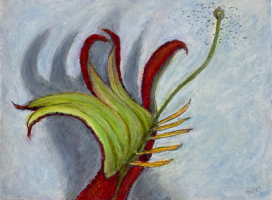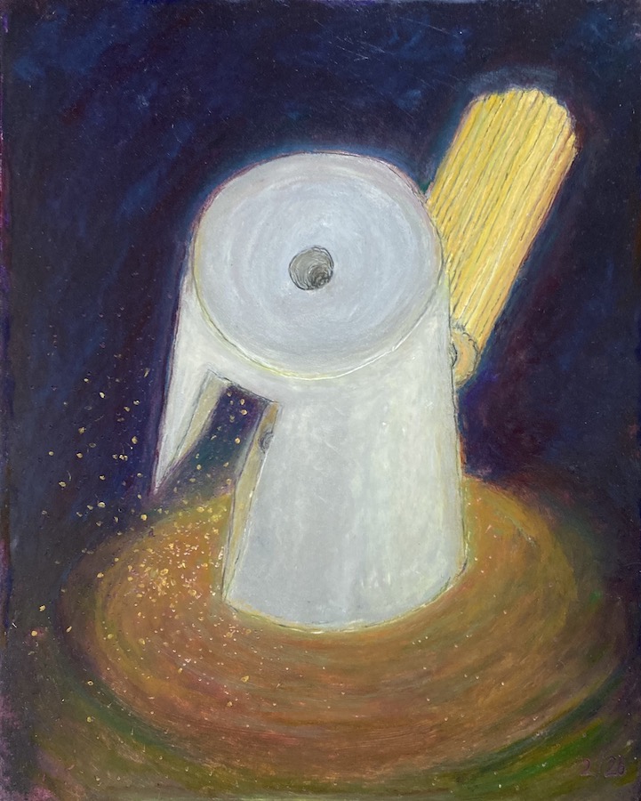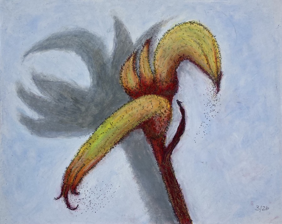 Seit 2020 bilden sich malerische Schwerpunkte heraus. Der Einstieg ergibt sich oft über eine Blindzeichnung. Die Motivwahl konzentriert sich auf kleine Dinge aus dem Alltag oder der Natur. Farben, Farbmischungen, Farbkontraste werden ausgelotet und in den Gegenständen und Hintergründen zum Leuchten gebracht. Ab 2022 fließen kubistische und surreale Elemente in die Bilder ein. Seit 2026 arbeite ich verstärkt an Variationen von Bildmotiven und dem Zusammenspiel dabei.