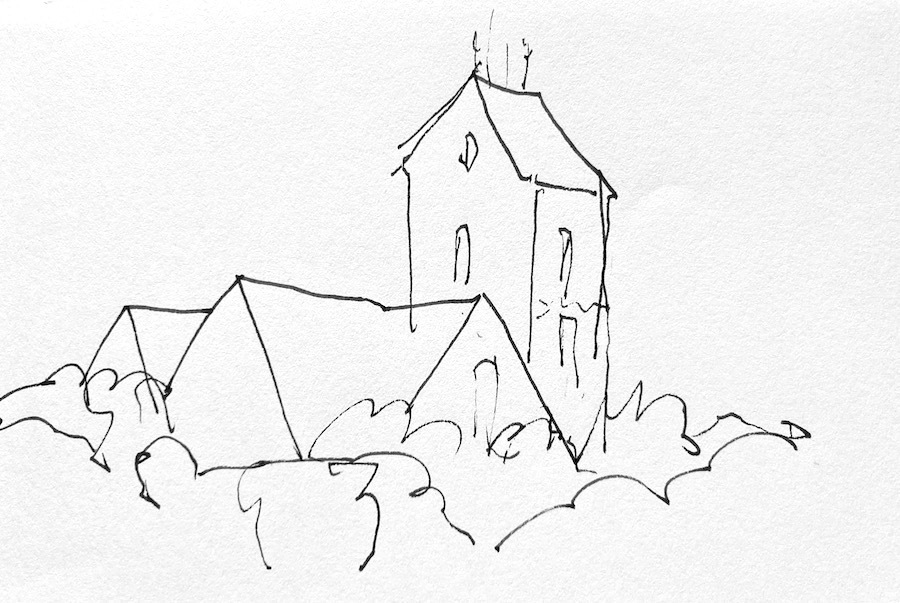 St Johannis/Föhr Tinte auf Papier, 9x13cm, 2024