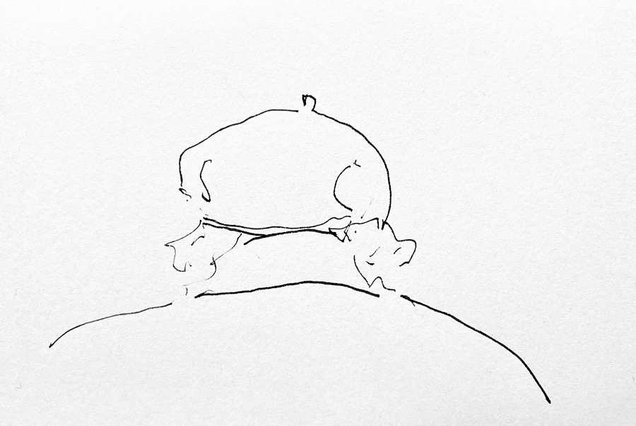 Meine Zeichnungen entstehen in der alltäglichen Umgebung, unterwegs oder gezielt projektbezogen - ein spielerisches Erfassen wesentlicher Charaktermerkmale bei minimal kontrollierendem Blick auf die entstehende Zeichnung. Die Blindzeichnung - entweder mit geschlossenen Augen oder nur auf den Gegenstand schauend - bildet die Grundlage für diesen zeichnerischen Ausdruck.